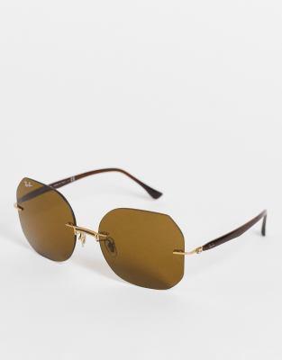 Ray-Ban – Brązowe damskie okulary przeciwsłoneczne w dużych kwadratowych oprawkach 0RB8067