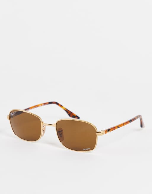 Ray-Ban – Kwadratowe okulary przeciwsłoneczne w kolorze złotym i brązowym