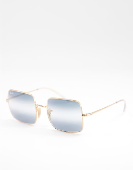 Ray-Ban – Kwadratowe okulary przeciwsłoneczne w złotych oprawkach z niebieskimi szkłami