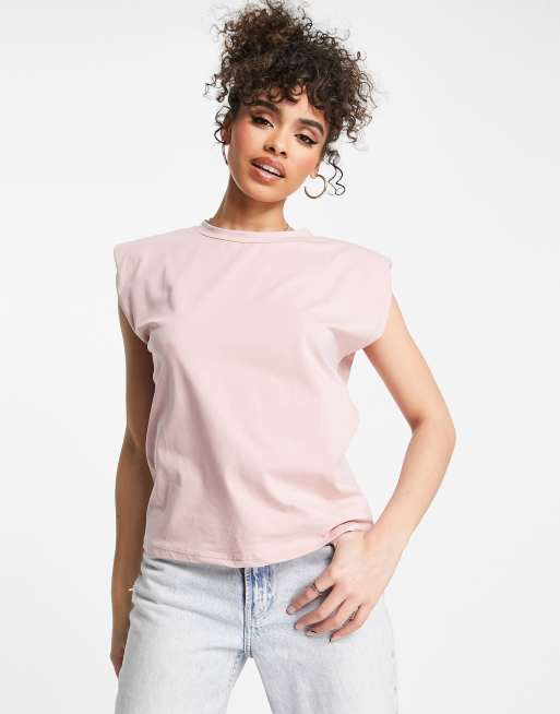 Rebellious Fashion – Różowy T-shirt oversize z poduszkami na ramionach