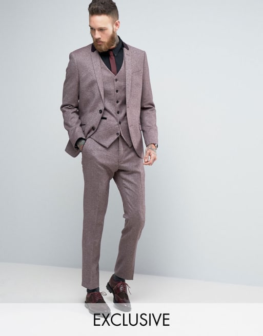 Heart & Dagger – Bordowy obcisły garnitur z tweedu