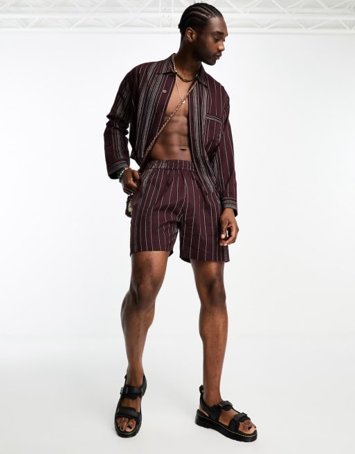 Reclaimed Vintage – Bordowe, letnie szorty w haftowane paski, część zestawu