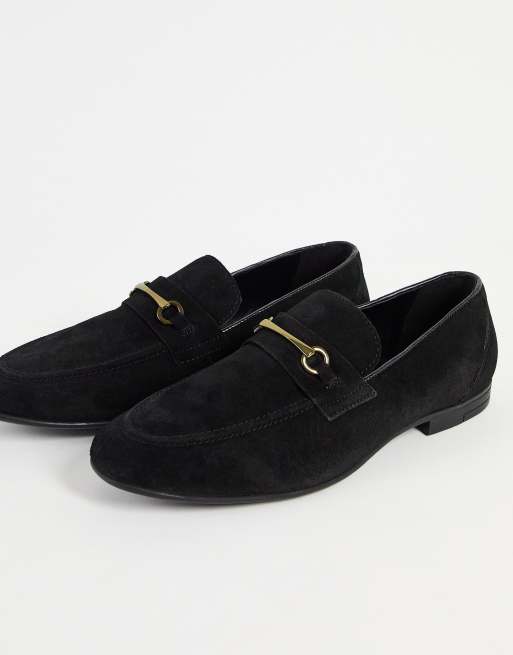 Red Tape – Czarne zamszowe mokasyny z metalowym wędzidełkiem