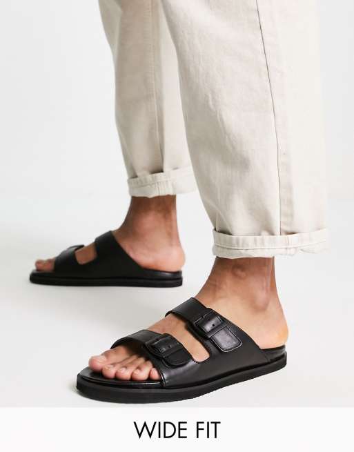 Red Tape Wide Fit – Czarne skórzane sandały wsuwane z podwójnymi sprzączkami