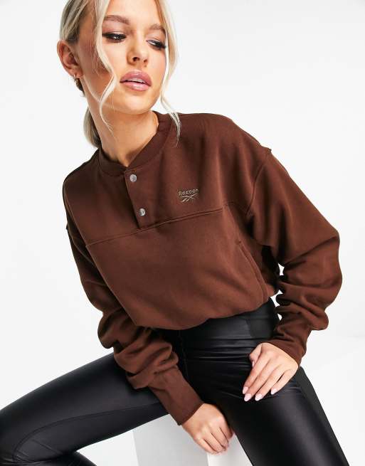 Reebok – Brązowa bluza o krótkim fasonie z guzikami