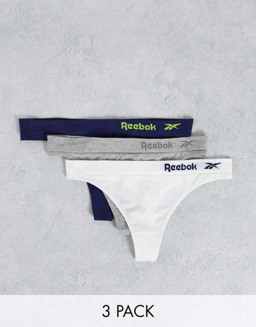 Reebok – Primula – Zestaw 3 par bezszwowych stringów w kolorach szarym, białym i granatowym