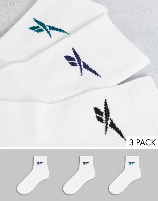 Reebok – Zestaw 3 par białych skarpetek z kolorowym logo – tylko w ASOS