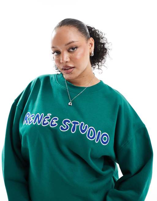 Renee Studio Plus Exclusive – Zielona bluza oversize z nadrukiem z logo, część zestawu