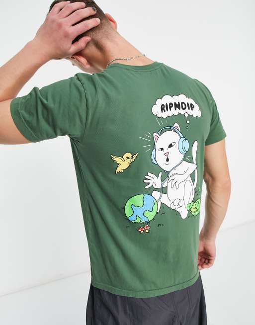 RIPNDIP – Zielony T-shirt z nadrukiem „I like turtles” na piersi i plecach