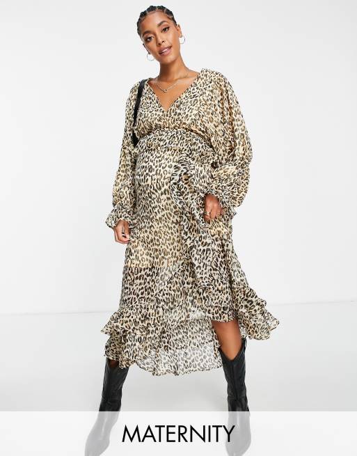 River Island Maternity – Beżowa kopertowa sukienka midi w cętki