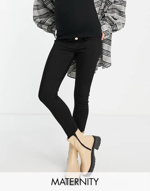 River Island Maternity – Molly – Czarne obcisłe jeansy z pasem zasłaniającym brzuch