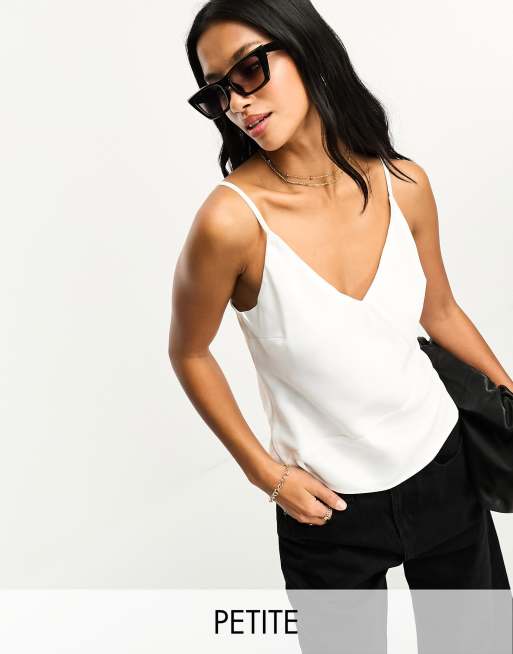 River Island Petite – Biały asymetryczny satynowy top na ramiączkach