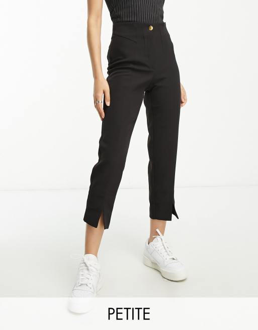 River Island Petite – Czarne spodnie cygaretki z rozcięciem z przodu