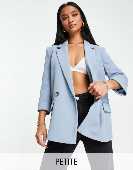 River Island Petite – Jasnoniebieska marynarka z marszczonymi rękawami