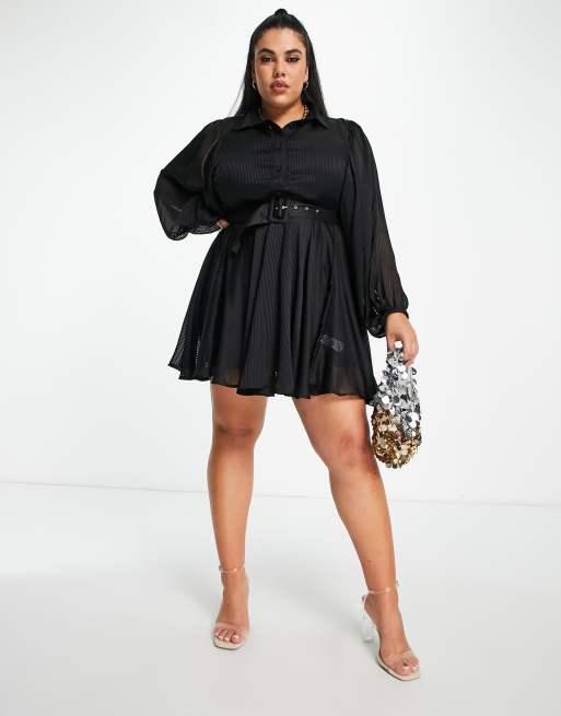 River Island Plus– Czarna koszulowa sukienka mini z rękawami typu nietoperz