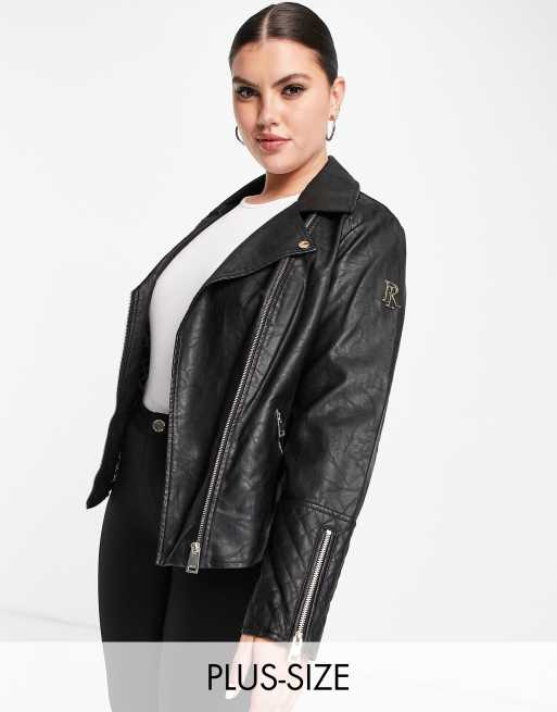 River Island Plus – Czarna kurtka typu biker z imitacji skóry z logo