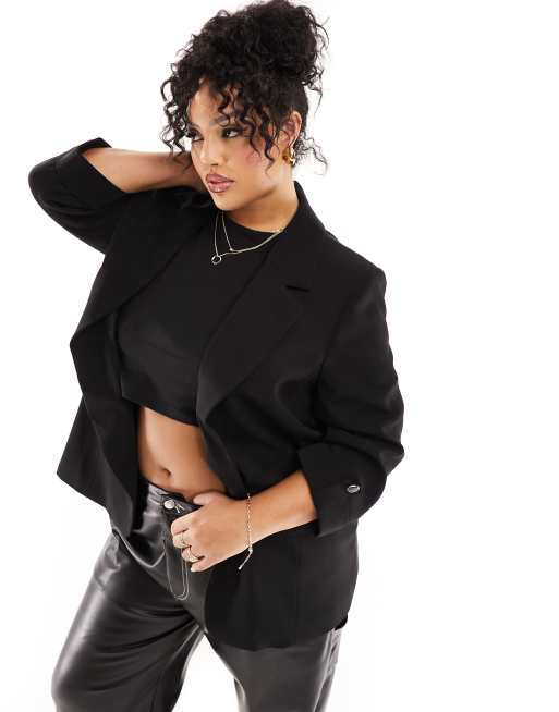 River Island Plus – Czarna marynarka z podwijanymi rękawami