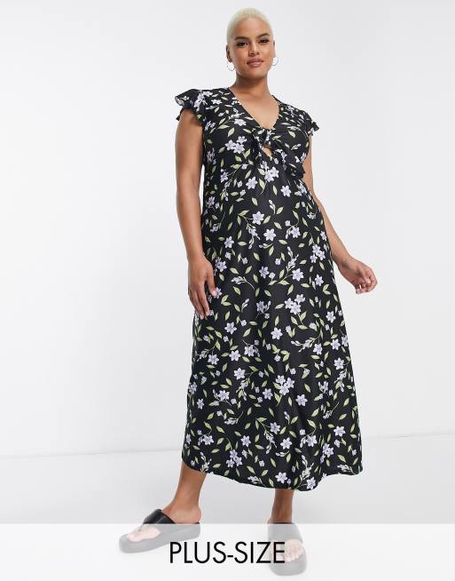 River Island Plus – Czarna sukienka midi w kwiatowy wzór