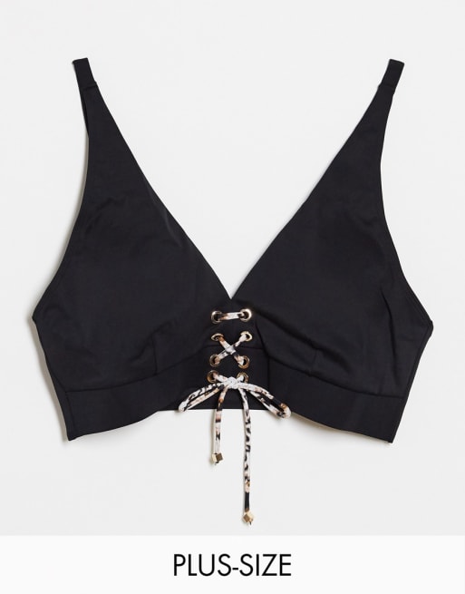 River Island Plus – Czarne bikini z ozdobnym wiązaniem