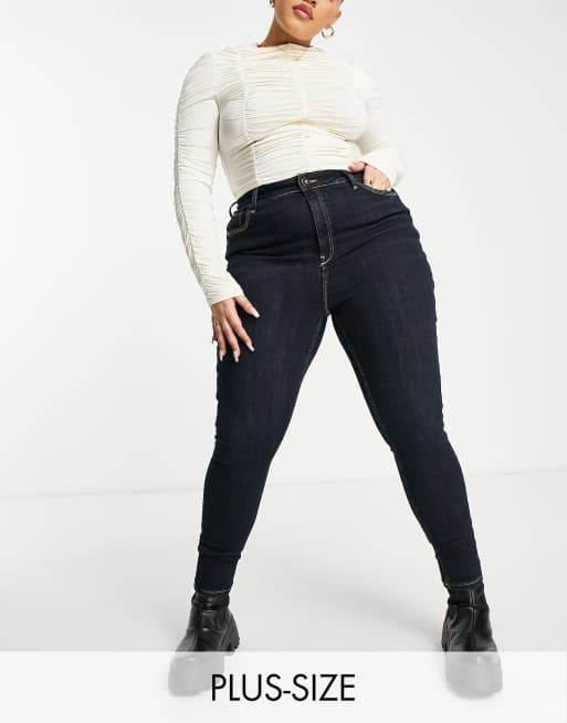 River Island Plus – Modelujące ciemnoniebieskie jeansy o obcisłym kroju z podwyższonym stanem
