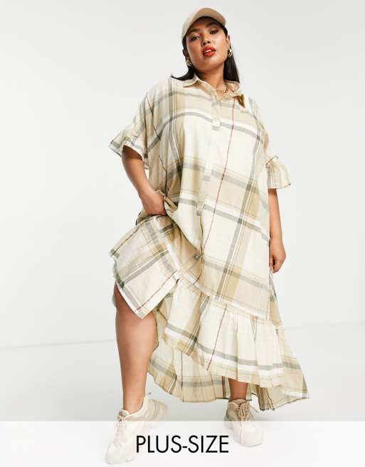 River Island Plus – Zielona obszerna sukienka koszulowa midi w paski o trapezowym kroju
