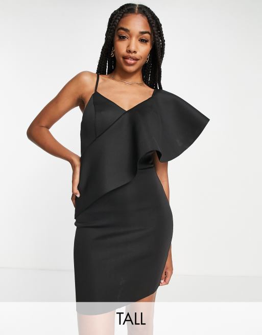 River Island – Tall – Czarna sukienka mini z falbanką z materiału w stylu scuba