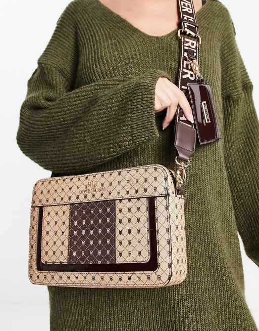 River Island – Beżowa pudełkowa torebka crossbody we wzór z monogramem