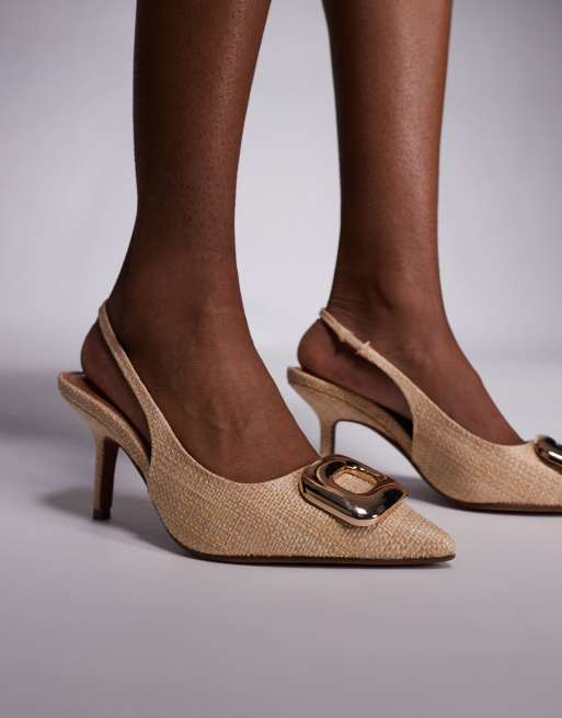 River Island – Beżowe czółenka z rafii na obcasie z paskiem za piętą