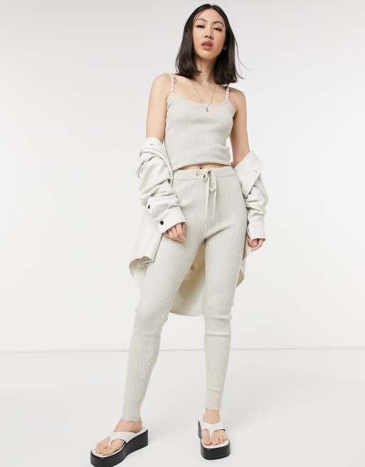 River Island – Beżowe legginsy z prążkowanej dzianiny – część zestawu