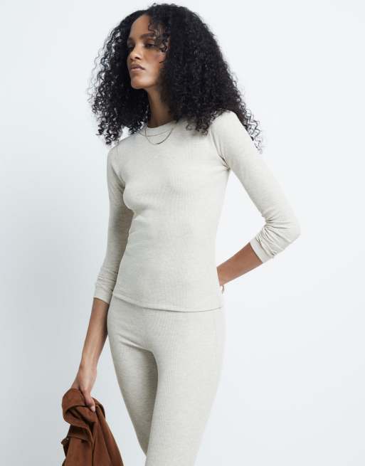 River Island – Beżowy krótki i obcisły T-shirt z długimi rękawami