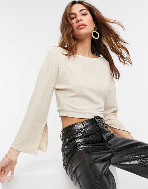 River Island – Beżowy top z szerokimi rękawami i rozcięciami