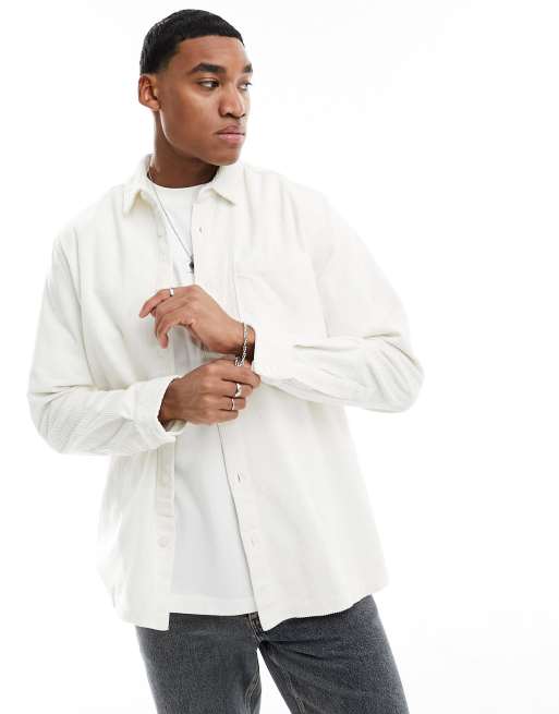 River Island – Biała sztruksowa koszula z krytymi guzikami