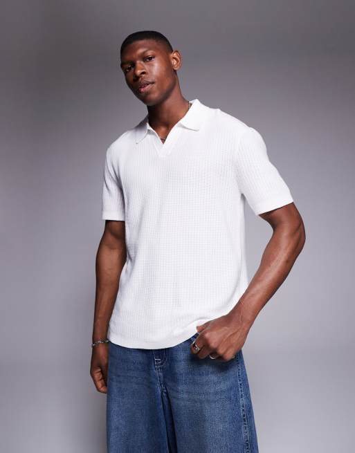River Island – Biały top z otwartym kołnierzykiem polo, z cienkiej dzianiny