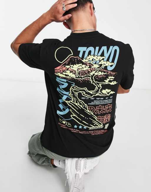 River Island – Bonsai – Czarny T-shirt z nadrukiem