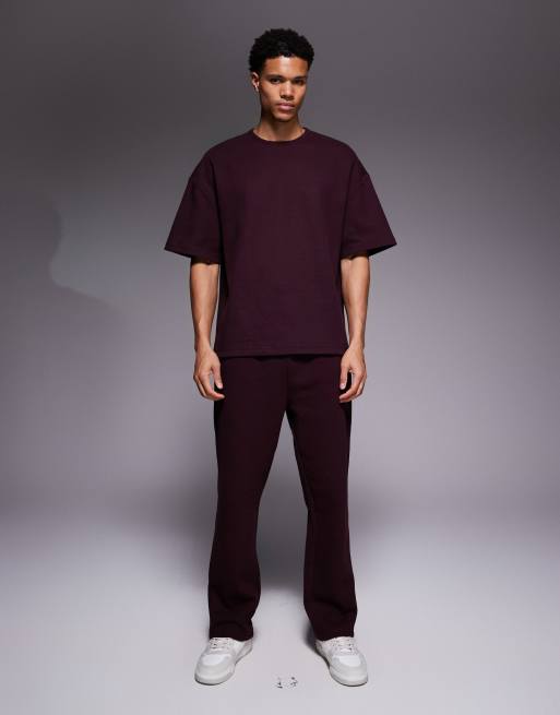 River Island – Bordowy zestaw fakturowany: T-shirt i szorty