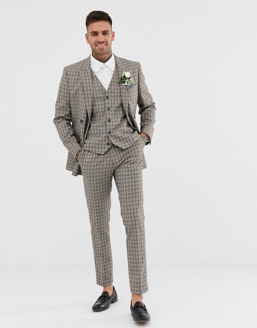 River Island – Brązowy dwurzędowy garnitur w kratkę