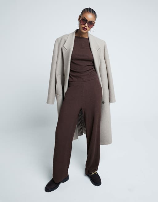 River Island – Ciemnobrązowe fakturowane spodnie z szerokimi nogawkami, część zestawu