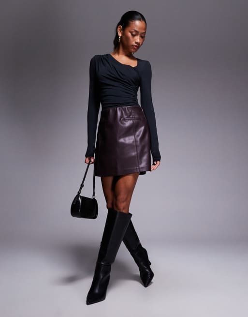 River Island – Ciemnoczerwona spódnica mini z imitacji skóry z kieszeniami
