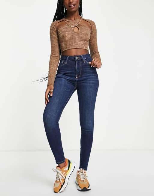 River Island – Ciemnoniebieskie jeansy o obcisłym kroju z podwyższonym stanem