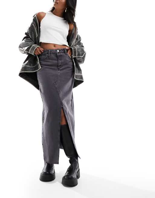 River Island – Ciemnoszara jeansowa spódnica maxi z rozcięciem z przodu