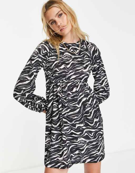 River Island – Czarna luźna sukienka mini w abstrakcyjny wzór