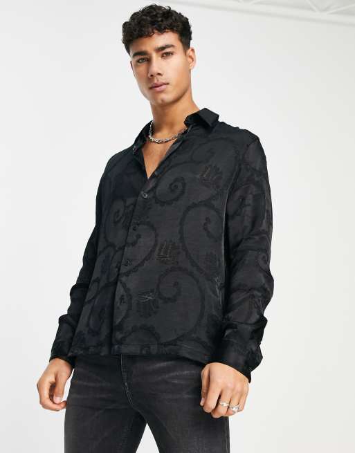 River Island – Czarna przezroczysta koszula z długimi rękawami we wzór paisley