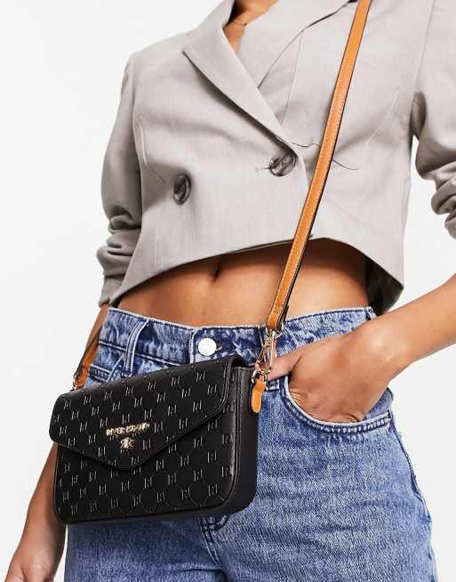 River Island – Czarna torebka kopertówka crossbody z tłoczonym wzorem i kontrastowym paskiem