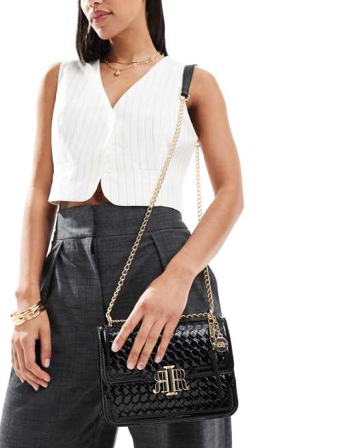 River Island – Czarna torebka na pasku z wytłaczanym plecionym wzorem