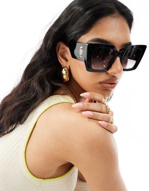 River Island – Czarne okulary przeciwsłoneczne typu kocie oczy ze zdobionymi zausznikami