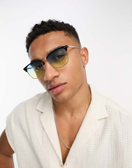 River Island – Czarne okulary przeciwsłoneczne w metalowych oprawkach z tęczowymi szkłami
