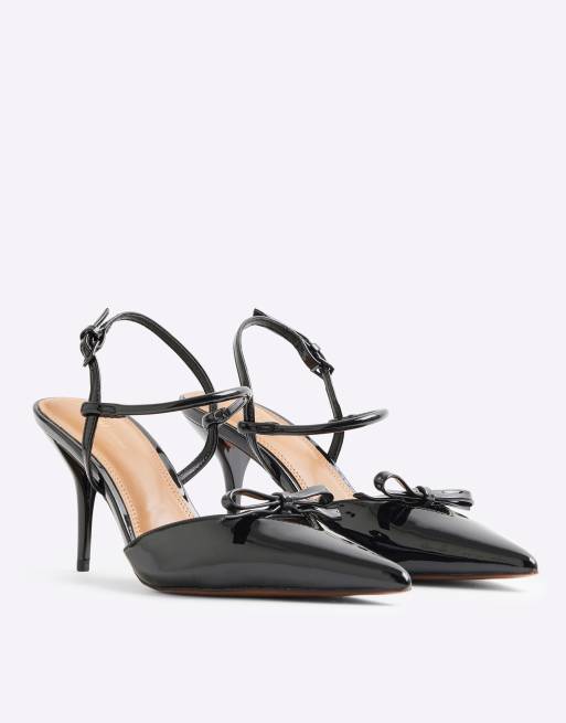 River Island – Czarne sandały na obcasie z paskiem za piętą i kokardką
