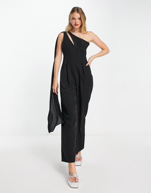 River Island – Czarny kombinezon na jedno ramię ze wstawką w stylu peleryny
