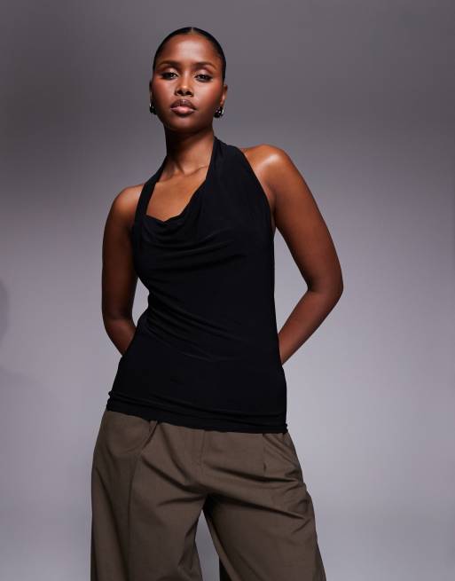 River Island – Czarny top z dekoltem typu halter