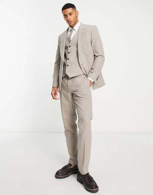 River Island – Dopasowany flanelowy garnitur w kolorze ecru